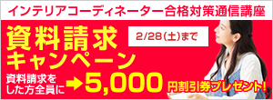 【今なら5,000円割引!】「インテリアコーディネーター1次・2次試験合格対策通信講座」資料請求キャンペーン実施中。