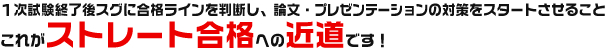 そのためにもいち早く1次試験の得点を把握し、合格ラインを判断した上で学習を始める必要があるのです。