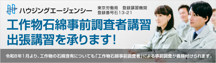 工作物石綿事前調査者講習/一般建築物石綿含有建材調査者講習/石綿作業主任者技能講習